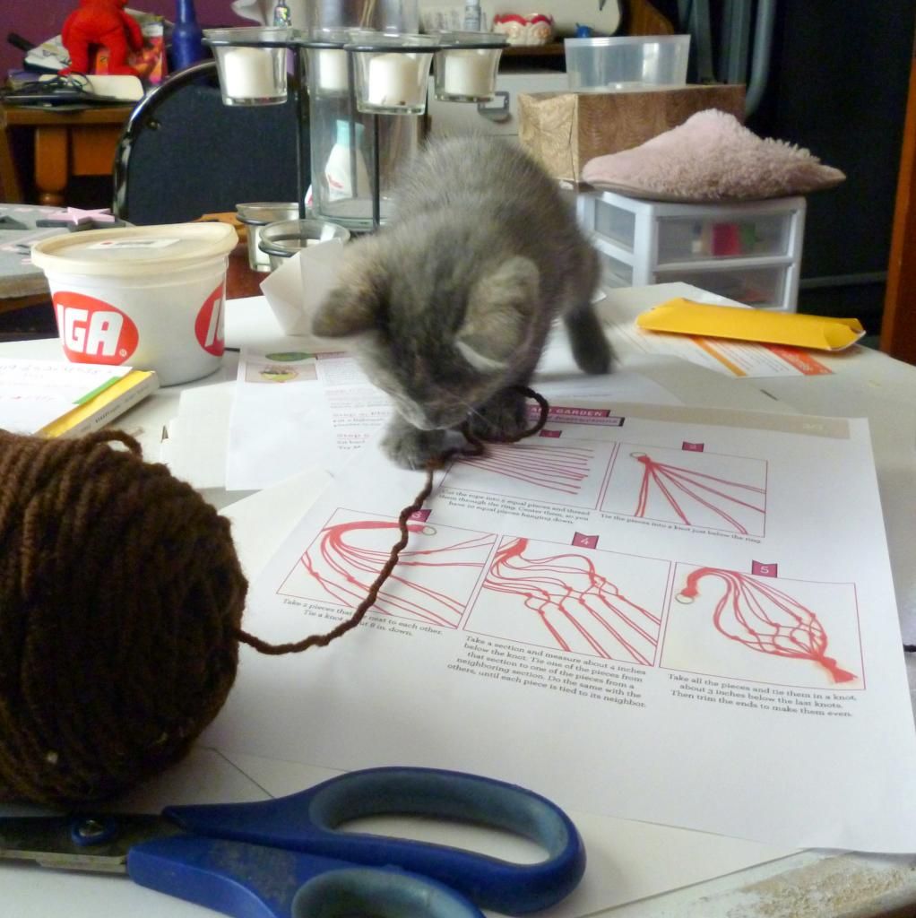Next was the Macrame part. Since I'm generally a paper crafter, working with the yarn was a bit tricky for me. Thankfully my assistant stepped in with some suggestions.