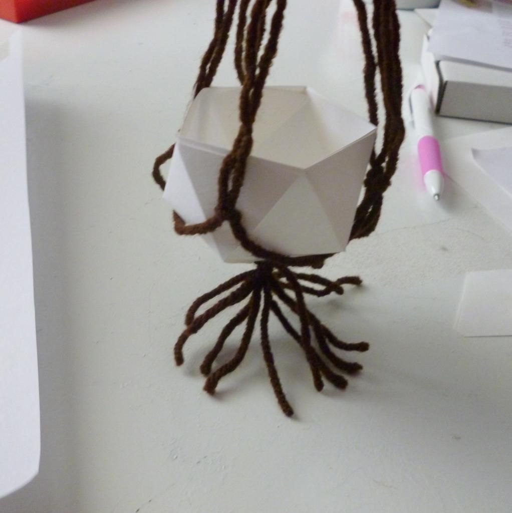 So now what would I do with the full sized version? I'm pretty sure I would try to find some white cardboard and a bright colored yarn. I would also use a smaller, brightly colored plant - like a Moss Rose. From my experience, Moss Roses also do pretty well in shallow dirt/pots so I think they would be great in these Origami Garden pots.